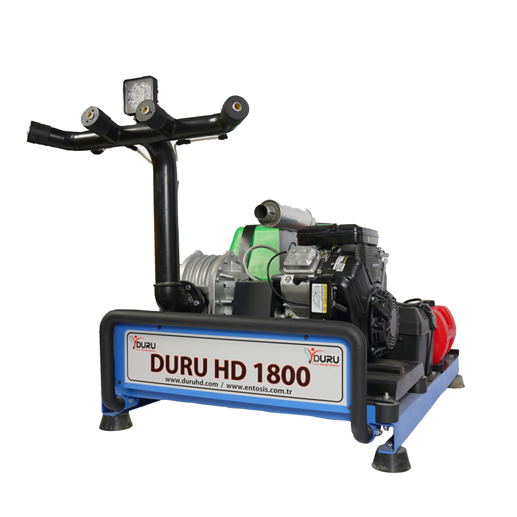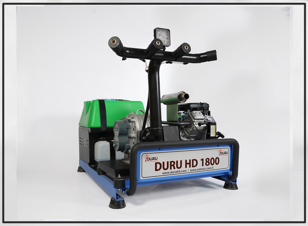 Duru hd 1800 Soğuk sisleme ve ULV ilaçlama makinesi. Dünya sağlık örgütünün kriterlerine sahip olduğu için günümüz sektöründe oldukça tercih edilir . Duru hd 1800 cihazımızın kullanım ömrü 15 yıldan fazladır. Biyosidal mücadelede bulaşıcı hastalık taşıyan sivrisinek ve karasinek gibi haşerelerin popülasyonunu kontrol altına almak için kullanılır. Duru hd 1800 cihazını marş anahtarı ile çalıştırarak kumandalar yardımıyla makine aktif hale getirilir. Özellikle bilinmesi gereken kurallardan biri ise makine çalışır vaziyette iken direk jeneratör üzerinden kapatılmamalıdır. İlk önce kumandadan ulv başlığına gelen ilaç formasyonu kapatılır ardından içinde kalan ilaç dışarıya son damlası akana kadar çalıştırılır ve en son kumandadan ulv başlıkları kapanıp jeneratörün gücü kesilmelidir.