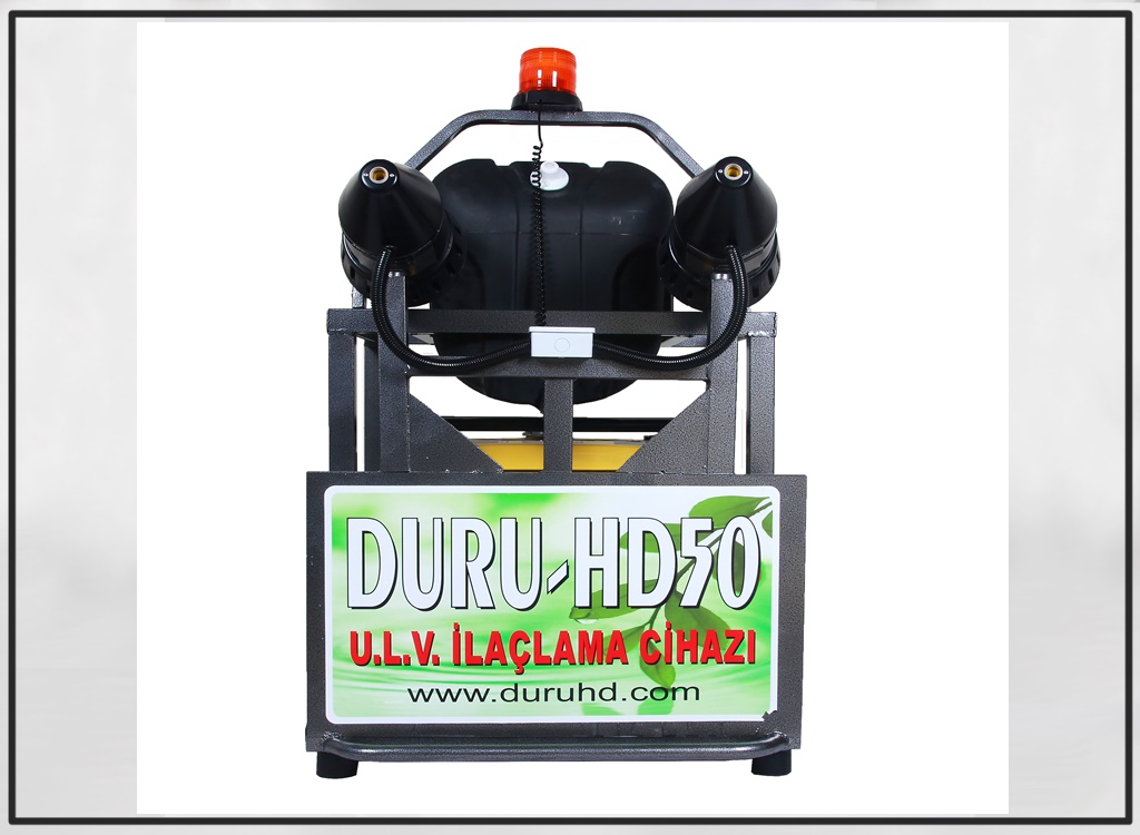 Duru hd 50 Soğuk sisleme ve ULV ilaçlama makinesi. Dünya sağlık örgütünün kriterlerine sahip olduğu için günümüz sektöründe oldukça tercih edilir . Duru hd 50 cihazımızın kullanım ömrü 15 yıldan fazladır. Biyosidal mücadelede bulaşıcı hastalık taşıyan sivrisinek ve karasinek gibi haşerelerin popülasyonunu kontrol altına almak için kullanılır. Duru hd 50 cihazını marş anahtarı ile çalıştırarak kumandalar yardımıyla makine aktif hale getirilir. Özellikle bilinmesi gereken kurallardan biri ise makine çalışır vaziyette iken direk jeneratör üzerinden kapatılmamalıdır. İlk önce kumandadan ulv başlığına gelen ilaç formasyonu kapatılır ardından içinde kalan ilaç dışarıya son damlası akana kadar çalıştırılır ve en son kumandadan ulv başlıkları kapanıp jeneratörün gücü kesilmelidir.