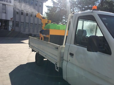 Mist blower : Tüm fonksiyonlar ergonomik ve kullanımı kolay uzaktan kumanda ile kontrol edilebilmektedir. Çoklu haşere ilaçlaması yapabilme özelliğiyle entegre ilaçlama makinesidir ( Mist blower – ULV- Pulvarizatör ) 3 bölüm şeklindedir.